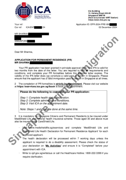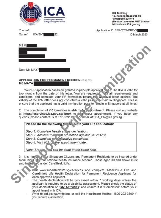 All applications for PR are carefully considered and reviewed by ICA. Factors such as the applicant’s family ties to Singaporeans, economic contributions, length of residency in Singapore, ability to contribute to and integrate into Singapore, and commitment to sinking roots in Singapore are considered, among other factors.